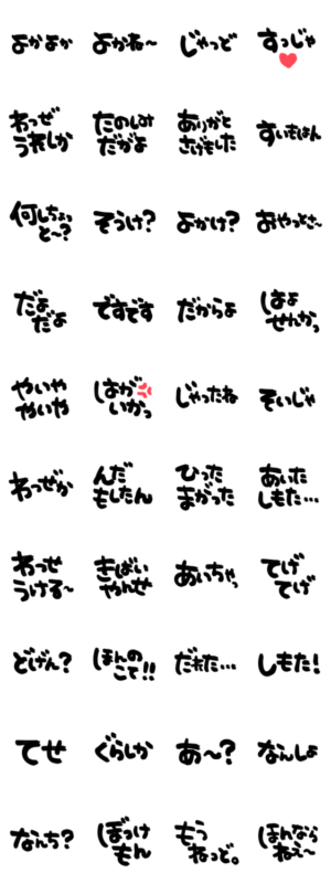 筆文字で九州地方の鹿児島弁 !! シンプルで使いやすい大きな文字のスタンプです♪ぴよたぬき より発売