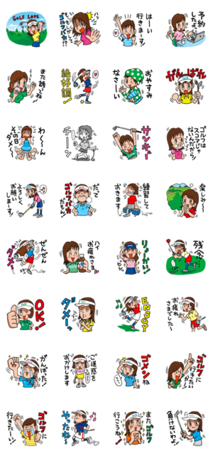 ゴルフバカイラストレーター野村タケオのゴルフ大好き女子向けのスタンプです!女の子同士のゴルフ話やゴルフ好き男子との会話にぜひ!あ、男子が使っても良いですよ〜w