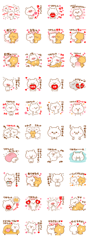 ♥愛しのりかちゃん♥第三弾はラブ満載♥ りか/りかこ/理香/利香/梨花/里佳/梨華/里香子/リカ/rika 等,りかちゃんに送るクマの名前・あだ名スタンプです。