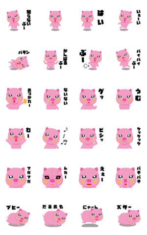 かわいらしいぶた、ぶたたろう。 シンプルアニメーションスタンプです。bigboss より発売