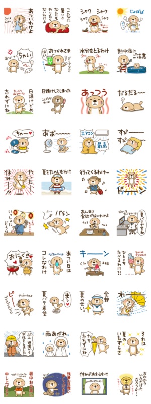 あなたに代わってストレートに気持ちを伝えるラッコさんの初の夏スタンプ。夏のご挨拶、台風、お祭り、夏の食べ物など盛りだくさん!夏に使える楽しいスタンプです。satoco より発売