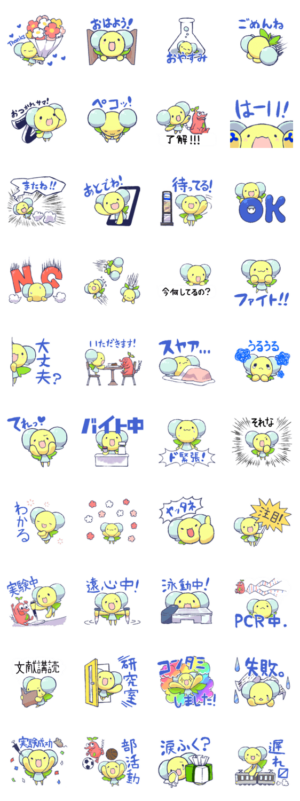 長浜バイオ大学の公式マスコット、フララの学生生活のコメントスタンプです。バイオ系に限らず理系の学生や、高校生にも嬉しいアイテムが満載です。