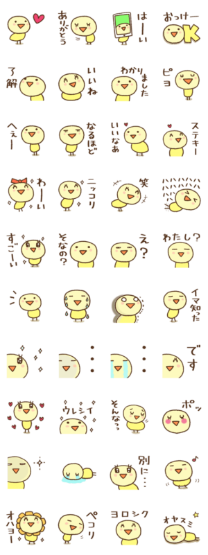 ピヨミちゃんのとてもシンプルなリアクションスタンプ40個。素直な気持ちが伝わりやすく、毎日ずーっと使えて便利です。