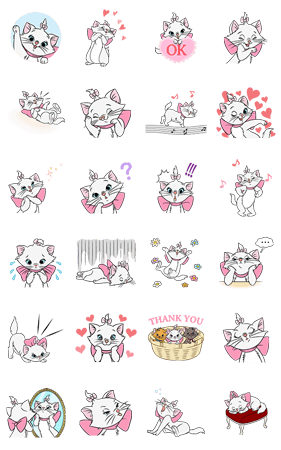 「おしゃれキャット」に登場する子ネコ、マリーのアニメーションスタンプ。愛らしいしぐさで、とびきりキュートな表情からおすまし顔まで子ネコらしい可愛さいっぱい!