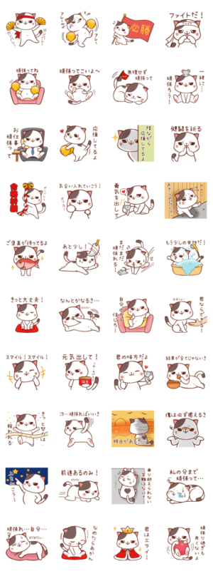 ぐーたら怠け猫のグー太郎が、励ましや応援メッセージを伝えるスタンプです。Manaru-cat より発売