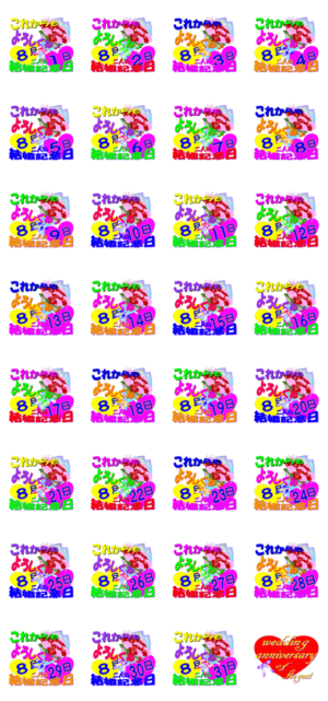 8月の結婚記念日スタンプ【全日分】ver.1 スタンプ画像一覧