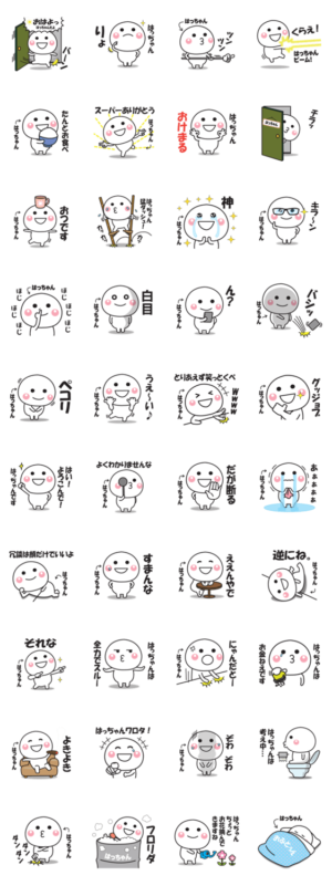 はつこ,はつみ,はつね,はづき,はじめ,はちろう,羽田,原田,橋本,八田,萩本,葉加瀬,葉月,八ノ瀬,灰原,灰谷,橋田さんなど、全国のはっちゃんが使う名前スタンプです。