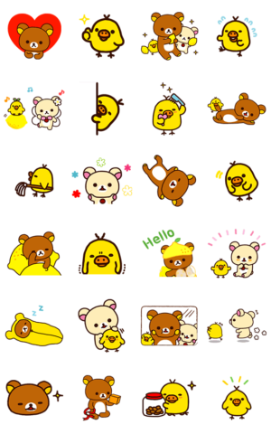 キイロイトリがメインのスタンプ。リラックマよりキイロイトリが好きなので嬉しい。