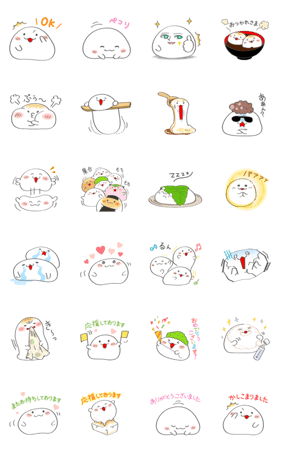 ぷにぷに、そしてびよーんとのびーる表現がまさに御餅、かわいくて美味しそうなスタンプです。