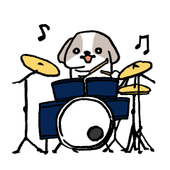 バンド生活でよく使うスタンプをドラム犬バージョンで作りました。犬種モデルはシーズーです。