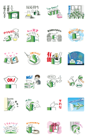 キムワイプを製造・販売する日本製紙クレシアが制作したキムワイプオフィシャルスタンプです。理系女子・理系男子の共通語「キムワイプ」が初めてスタンプになりました!