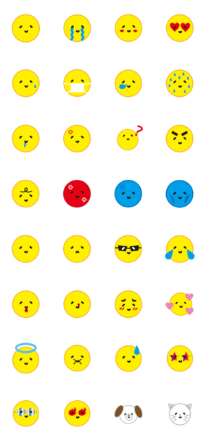 とんぼせんせいのえもじスタンプです。同じ顔のシンプルなデザインですが、豊かな表情で使いやすいです。とんぼせんせい より発売