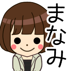 まなみさんの名前入りスタンプ。あいさつバージョンです!べるうっど より発売