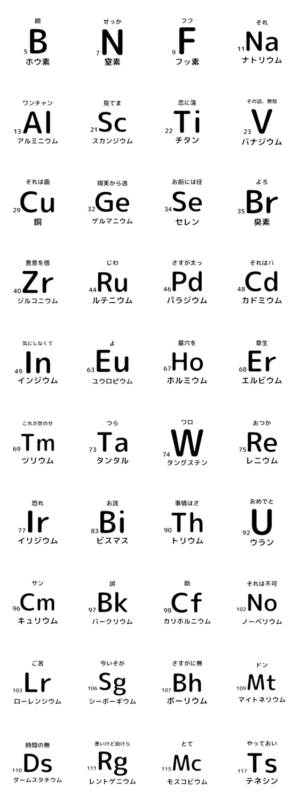 あらゆる状況に対応したネタ元素記号スタンプが、ちょっとマニアックになって帰ってきた!ドヤ顔で送りつけ、友達を困惑させよう!そると より発売
