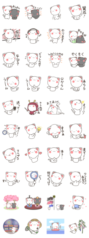 桃色ほっぺの白ねこさん「ももし~」のシュールでかわいい日常会話スタンプ第4弾!今回は春夏イベントスタンプも!お花見や七夕に送ってみてね♪