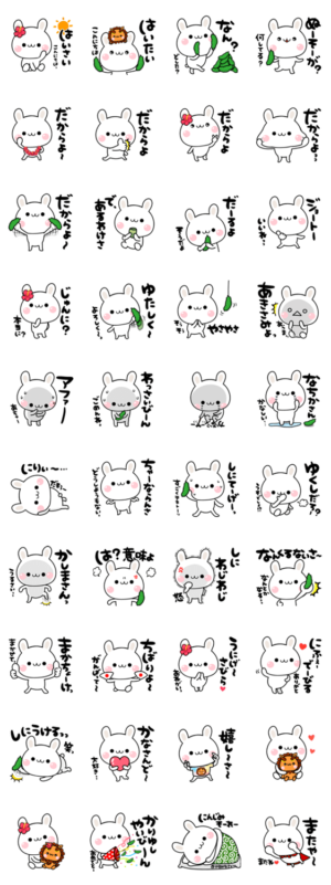 ゴーヤが好きな沖縄うさぎ、うさたんと時々シーサー。日常で使いやすい言葉を集めました♪さりげなく標準語付きなので沖縄県以外の人にも幅広く使えます♪
