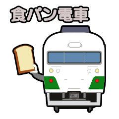 食パン電車スタンプです。文字の通り食パン風の電車や中間車の先頭車化改造車両をモチーフとした鉄道大好きさん向けスタンプです