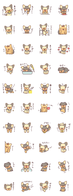 子犬のヨークシャーテリアのスタンプです。フルコートの子もミッキーカットの子も。つじなつみ より発売
