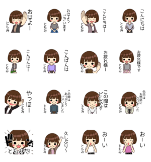ともみさんの名前入りスタンプ。あいさつバージョンです!べるうっど より発売