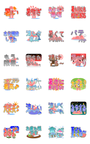 暑い夏に使えるシンプルな動くデカ文字スタンプになります♪