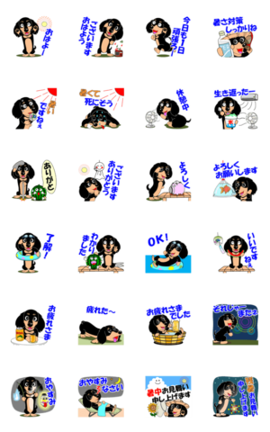 動く!ミニチュアダックス10「夏」 スタンプ画像一覧