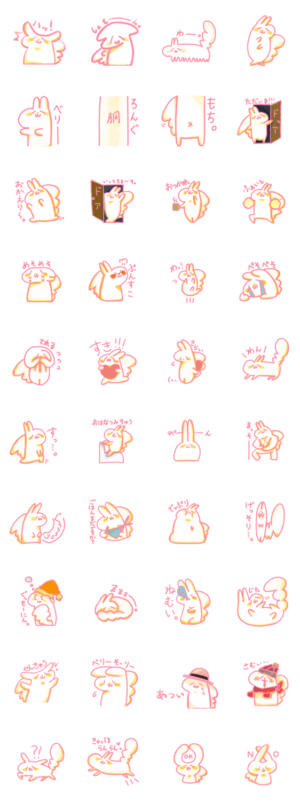 うさぎと犬のハーフ、ぷりちぃおすいぬ・きなこもち3歳のはーとふるスタンプです。かにこう より発売