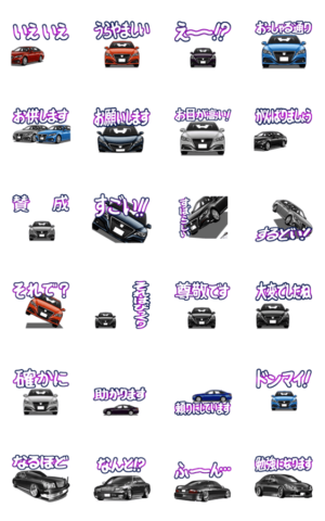 高級セダンならではの渋い、そして楽しいスタンプ、第4弾になります。セリフは全て1と2と3と被らないようにしています。