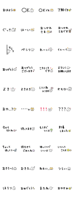 毎日使える基本の言葉とミニ絵文字のスタンプです。うさやん より発売