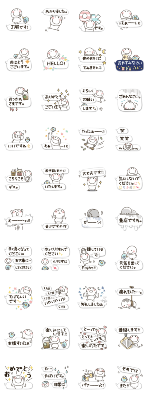 まるぴシリーズの第26弾です。誰もが笑顔になれるスマイルくんの、基本のセット吹き出しバージョンです。敬語、丁寧語、気遣いの言葉など。かなぴ より発売