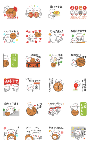 バスケ部、バスケチーム、バスケットボールが好きな方へ!日常頻出の言葉に、試合、練習などの連絡に使えるスタンプをプラス。先輩、友達、誰にでも使える敬語が多め。レムリン より発売