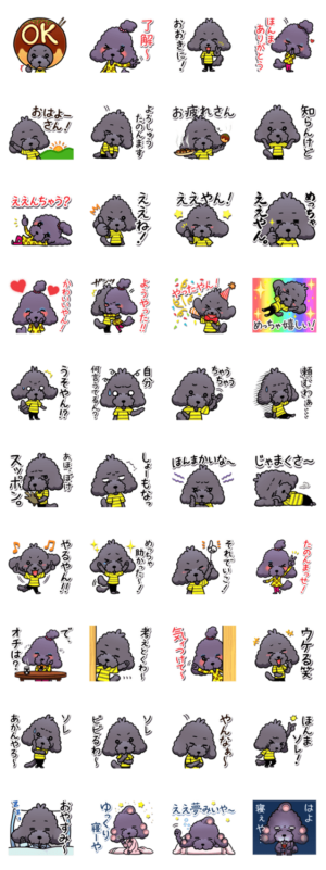 黒プードルの大阪弁(関西弁)スタンプ。日常会話中心です。昭和感漂うオカンもおります。毎日のトークや親子トークにもぜひ!はるのおん より発売