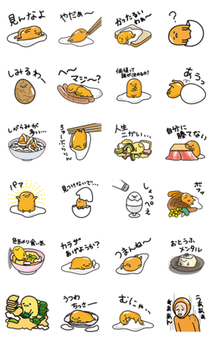 大人気、ぐでたまの喋るスタンプです。やる気の無さが表れているので、何か面倒くさい事があった時に私の分身だと思って友人によく送っています。