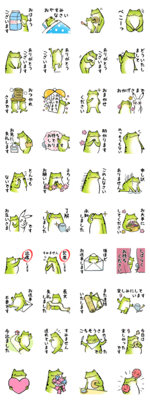 カエル大スキ~!どれもよく使う敬語ばかりなので、使いやすいです。
