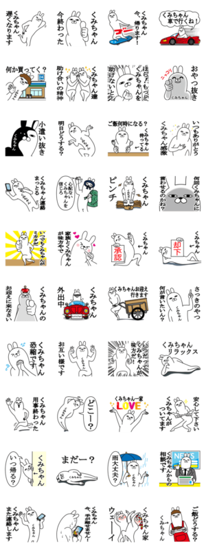 くみちゃんの家族の業務連絡編。久美子,公美子,久真子,組子,久三子,久実子,久未子,久美,來未,クミ,くみ子,くみえ,玖海子,久美江など全国のくみちゃん専用のスタンプ