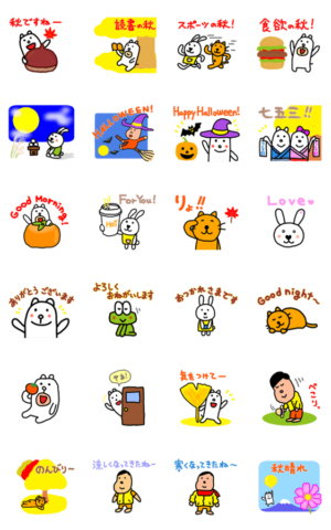 優しい色合いのタッチに可愛いキャラ。秋に使ってみたいスタンプです。