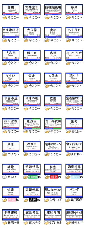 私鉄 東京-成田区間 気軽に今この駅だよ! スタンプ画像一覧
