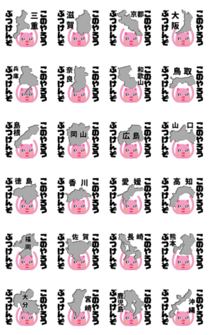 butatarouが都道府県をぶつけんぞ!と威嚇するスタンプの西日本版です。会話中にイラッとさせられた時などにお使いください。