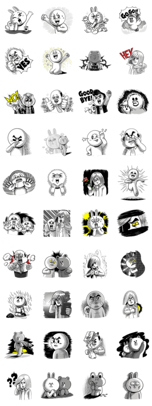 劇画コミックタッチのラインフレンズおもしろすぎ。会話にこのスタンプ挟んだらすべてが重たく演出できそう