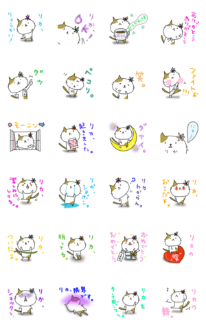 お名前りかちゃん、リカちゃんが使えるゆるいネコの日常スタンプです。 日常で使えるスタンプを集めました。