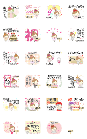 マフィの動くお名前スタンプシリーズです!誕生日結婚出産入学卒業等に使えるお祝いメッセージです!大事な人へ…マフィがよしこさんにかわってかわいくお届けします♪Faa Industry より発売