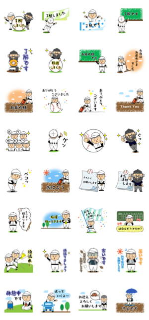 野球少年シリーズ第4弾スタンプです(*^^)v 挨拶から日常会話、送迎の連絡まで♪使いやすい言葉を集めました。ぜひお使いください(*^-^*)Lelien より発売