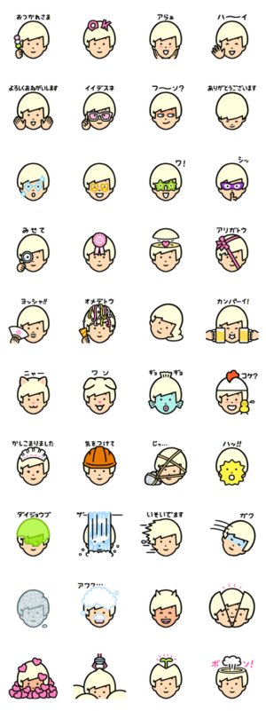 女の子の顔スタンプ第二弾 お礼やお祝い、おだんごも入っています。白根ゆたんぽ より発売