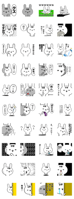 日本全国の苗字,宇野サンの人気毒舌うさぎ!面白く,ゲスで,ウザく,名前が,うのサンに無難に使える!ウノさん,ウノちゃん,ウッちゃん,ウーちゃんへ♡