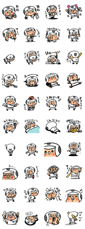 野球大好きスタンプ。プロ選手、クラブチームや草野球、社会人、保護者に使ってほしい、使いやすい応援スタンプ。年中使えるスタンプです。イラストレーターtunスタンプ