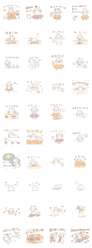 ももちーうさぎの秋とハロウィン スタンプ画像一覧