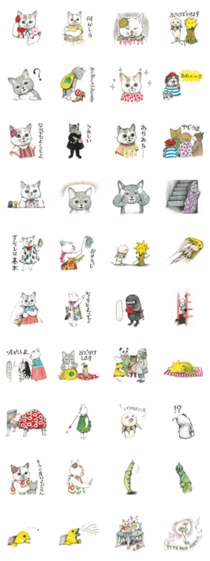 「せかいいちのねこ」「いらないねこ」に続く大人気絵本「ほんやのねこ」が豪華なスタンプに!色々なキャラクターの織り成す不思議でカワイイ世界をまるごと♪