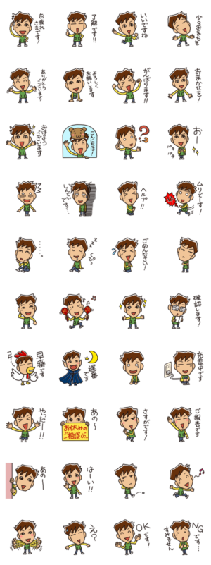 男性保育士さんのためのスタンプです!毎日、保育に事務に、お疲れさまです。明日もがんばって下さい(^^)kawahara-chotto より発売