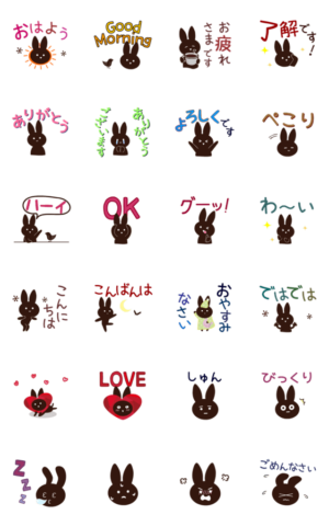 黒うさぎがかわいらしく動いて、ついつい使用したくなるスタンプです。