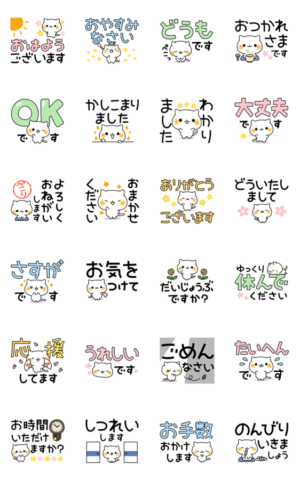マイペースなネコのアニーメーションスタンプ第二弾♡でか文字で伝わりやすい&使える敬語がとても便利♪目上の人やシニア世代、会社やママ友グループ、もちろん友達にも!