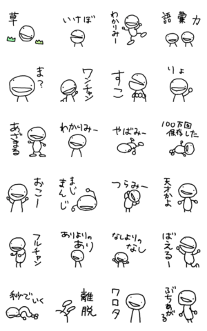 バカ(馬鹿)な下手くそなスタンプ第9弾です。 小学生の子供のようなあなたにどうぞ! 毎日使えるようで使えない?スタンプです。 今回はネットスラング編です。